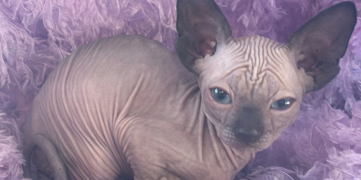 Sphynx ears need to be cleaned weekly or as needed using a pet ear cleaner, wipes, and or q-tips.